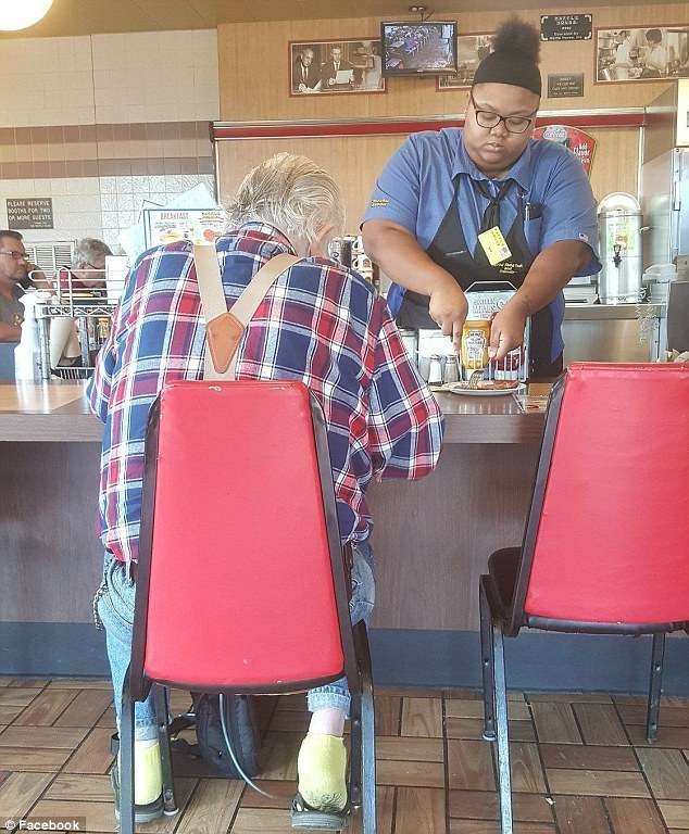 2018年03月13日最近這段時間,美國德州拉馬克18歲女孩Evoni Williams在當地的一間鬆餅店打工賺學費。那天一名叫Adrien Charpentier的年邁客人進店用餐。Charpentier是這間店的常客,他年紀大了,身體又不好,最近還染上肺炎,過去5周頻繁進出醫院,現在還插著呼吸器。