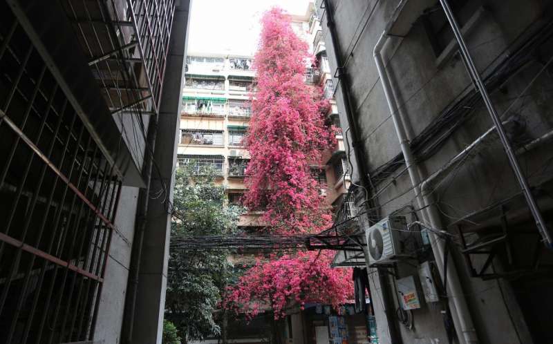 2018年04月06日春暖花開,不少人外出遊玩賞花。在大陸深圳羅湖區蓮塘村一處絕美的「九重葛瀑布」成為春日裡的美景,這棵生長了25年的九重葛不僅僅是一道風景,更見證了父子間深深的愛。