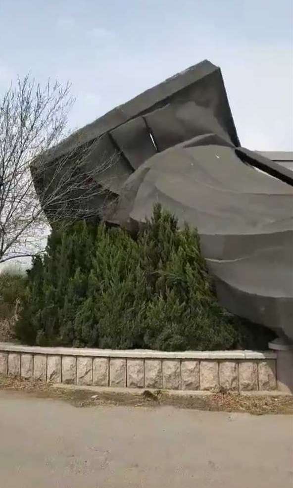 ▼然而在本月6號時,那裡卻忽然狂風大作,中國氣象局也發布了大風的黃色警戒,這時,銅像在「在狂風助力下,騰空而起,一飛而出數十米,被吹倒在地面目全非,銅製的冕旒也散落了一地」,模樣十分慘烈!