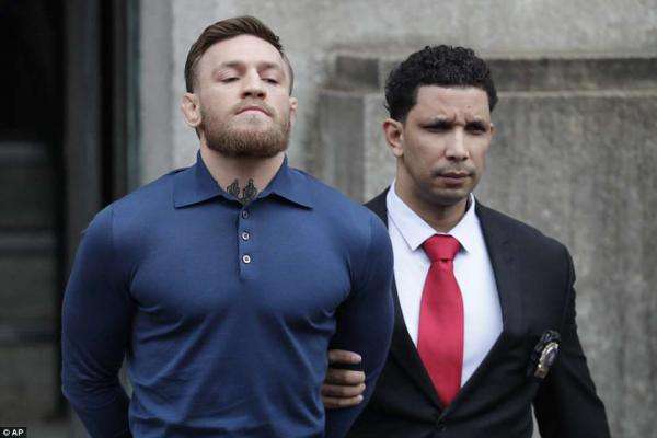 ▼在法庭上,康納爾·麥格雷戈還被拍到一臉不悅神情,一路上下巴微抬、眼神略帶不屑,在銬上手銬離開警局時,也是一言不發,同夥一併遭逮捕。