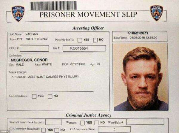 康納爾麥格雷戈遭逮捕! 面臨7年徒刑也沒在怕 還用「下巴看人」超不屑