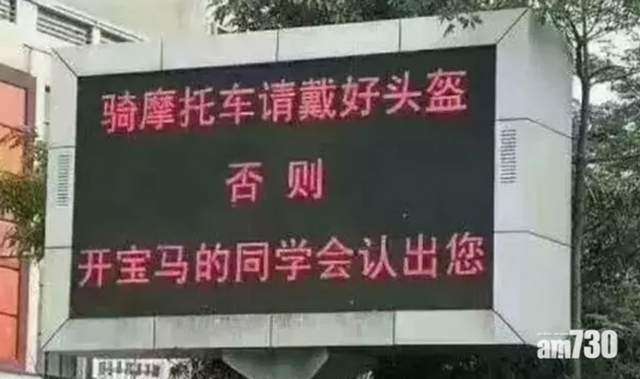 ▼「騎摩托車請戴好頭盔,否則...開寶馬的同學會認出您」