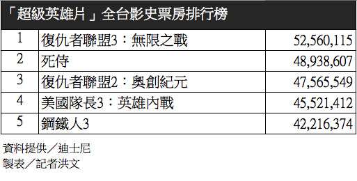 破4項影史記錄! 《復仇者聯盟3》全台首日票房5256萬奪冠