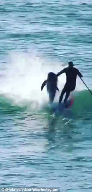 ▼當時Andrew看到了海豚,因為海豚很溫和,所以他沒有防備,繼續划衝浪板,靜靜等著牠們從自己身邊游過。