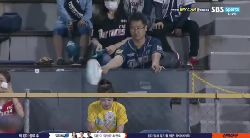 2018年05月19日棒球賽在韓國也是一種很受歡迎的運動之一,觀眾席可以看到很多情侶或是夫妻一起看比賽。日前就有一段影片拍到老公貼心幫啦啦隊女孩「解熱」,卻慘被老婆訓話的爆笑影片。