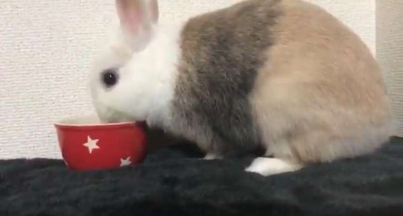 ▼原PO也笑道「給兔兔的屁屁貼上兩個眼睛後,瞬間成了謎之生物」,快來看看這超可愛的一幕吧!