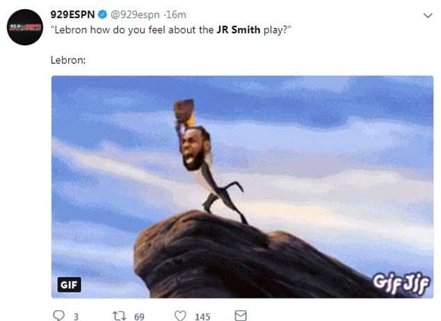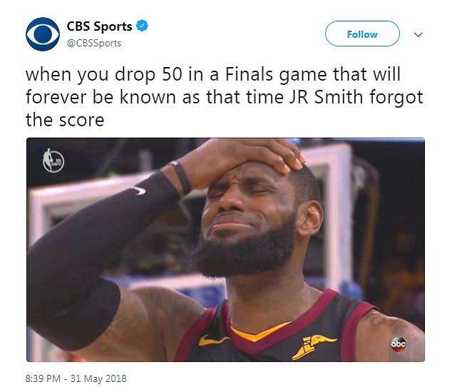 2018年06月02日美國NBA總決賽首場賽事戰況激烈,勇士隊與騎士隊數度進入拉鋸戰,不過就在最後關頭,搶得籃板的JR史密斯(JR Smith)卻放棄上籃,讓勇士隊在加時賽獲勝。觀眾紛紛對於JR史密斯的動作感到不解,更爆發改圖大戰!