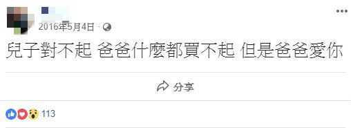 ▼「小不點」今年只有3歲,吳彥霆的臉書上也滿滿都是家族3人的甜蜜合照,過去他還曾在臉書上發文:「兒子對不起,爸爸什麼都買不起,但是爸爸愛你。」、「雖然你古靈精怪,但你要乖乖長大唷~」盡顯父愛,如今他已無法見證兒子的成長,讓網友看了不禁淚崩。