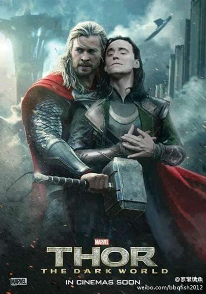 ▼這種有趣的失誤之前也發生過。《雷神索爾2》上映時,大陸一名網友PS了一張雷神洛基擁抱的基情版海報,結果被電影院直接拿去用。