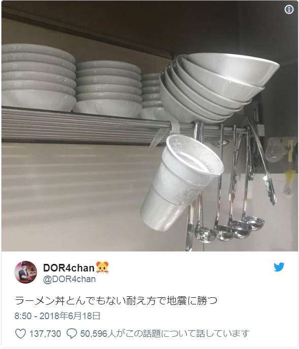 2018年06月23日18日早上8點左右,日本大阪地區發生6.1級地震,陸續傳出的災情讓人非常擔心。很多民眾在推特上分享地震情報、防災知識等等,讓人覺得很暖心。還有一些網友分享了地震後家中奇蹟生還的物品,讓擔憂的人們有了一絲笑容。