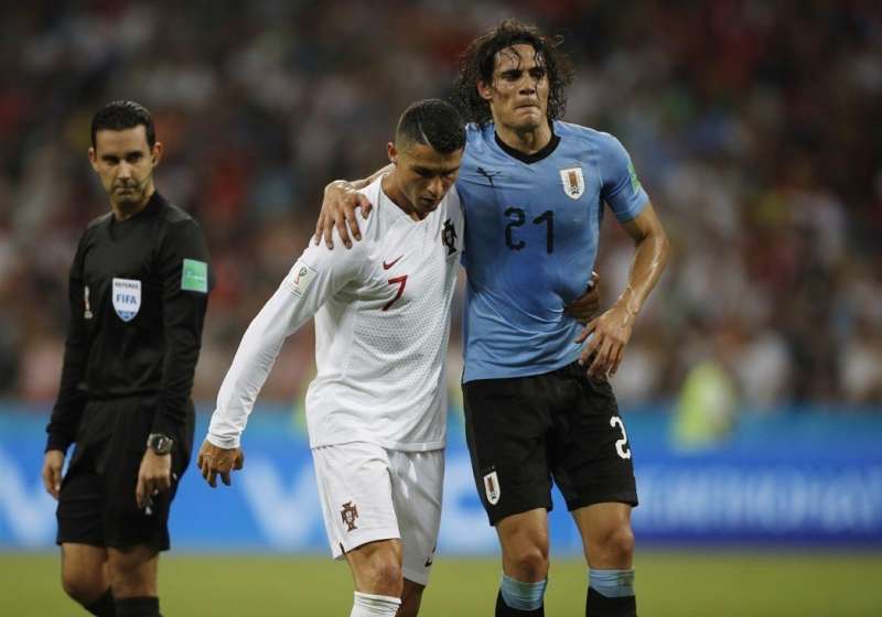 ▼卡巴尼在賽後感謝說:「我們面對的是世界最頂尖的球員,C羅無疑是我的偶像。」由於梅西2016年就有引退意願,這次世足賽失利,加上他和C羅都已年過三旬,外傳消息指出兩人很有可能退休,這或許是他們兩人最後一次參加世足賽。