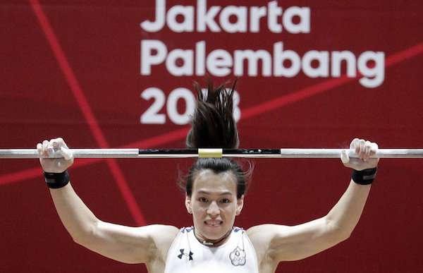 ▼本屆雅加達亞運,郭婞淳以舉重女子58公斤級參賽,抓舉部分,第一次試舉就穩穩舉起100公斤,第二次抓舉103公斤,第三次105公斤,成績穩定領先對手2公斤以上,確定獲得抓舉第一。