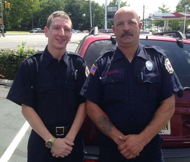 ▼這兩名男子分別是Paul Hullings和Tim Young。來餐廳之前,他們剛剛結束一項艱鉅的救援任務。附近的一間大型倉庫失火,他們忙碌了整整12個小時,終於能放鬆下來吃一頓飽飯。