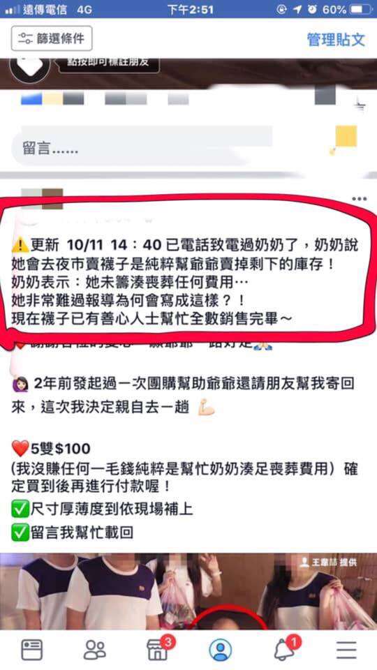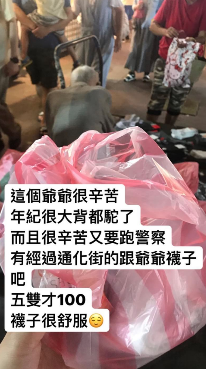 ▼如今攤車的老爺爺已經換成了老奶奶,網友一問之下才知道原來老爺爺已經走了。老奶奶只是負責把庫存賣掉,她也透過好心網友幫忙告知大家她並沒有湊喪葬費,網路上的募款帳號都是騙人的。網友們只要幫忙她買襪子就好了。