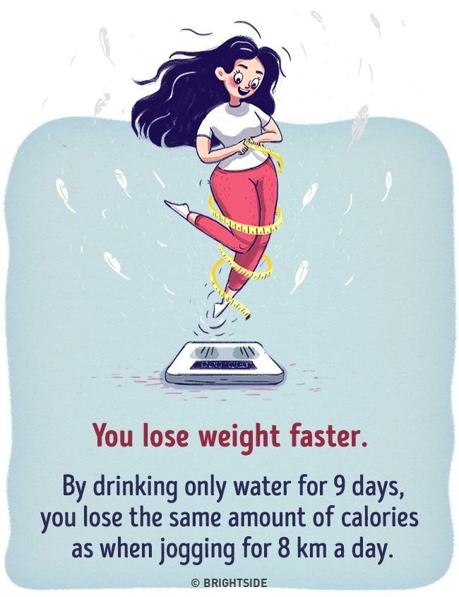 ▼減重速度變快:不喝飲料只喝水,堅持9天的話減去的卡路里相當於每天跑9公里。
