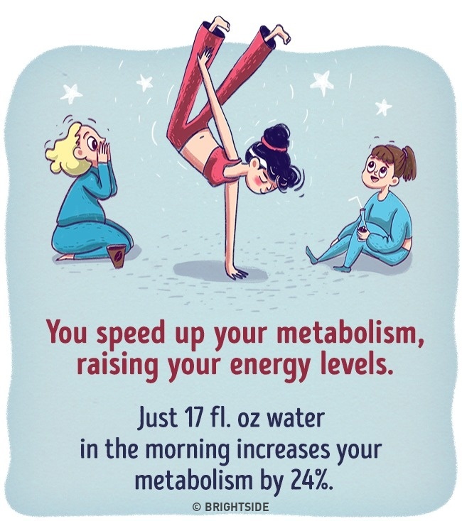 ▼增強新陳代謝,提高能量水平:每天早上喝500ml水,代謝率會提高24%。
