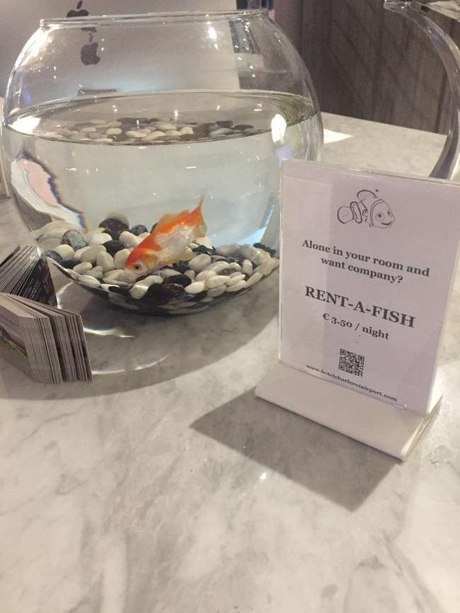 ▼「在房內一個人感到寂寞嗎?租一條金魚陪你吧!(一晚3.5歐元 = 新台幣125元)」