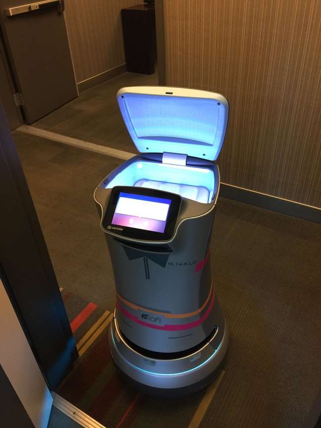 ▼衛生紙用完後,美國加州的這家飯店利用機器人來運送衛生紙到房間。