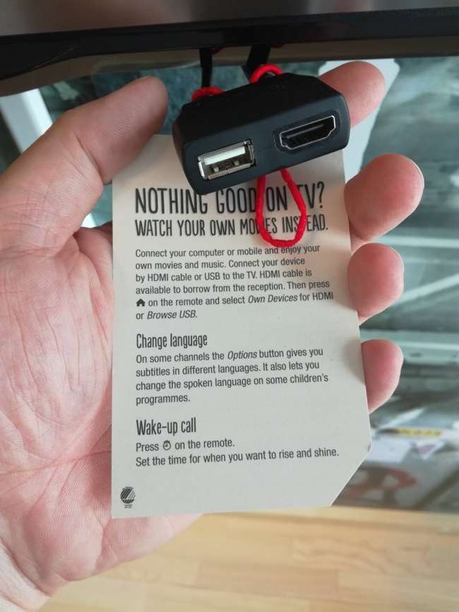 ▼為了方便客人使用電視,這家飯店還準備了連接好的USB和HDMI插口。
