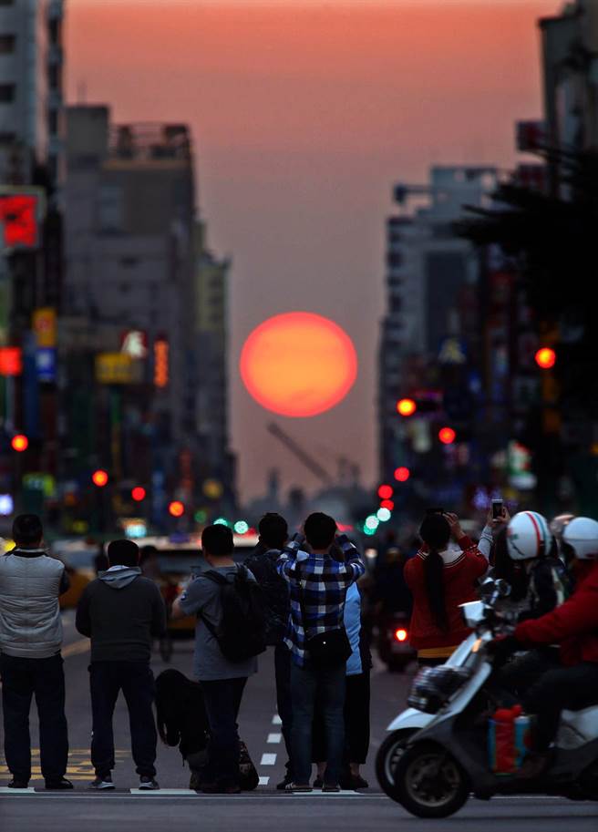 ▼這樣的夕陽你看過嗎?每年「曼哈頓懸日」出現的時刻,紐約街頭都會擠滿了人潮,等著要按下快門。