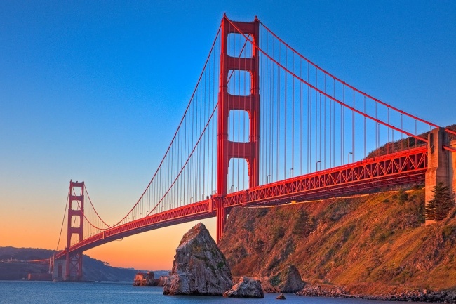 ▼舊金山金門大橋:這座橋樑是知名的打卡地。當初建造的時候,海軍希望設計成黑黃條紋,這樣濃霧天氣也能看得清。不過建築師艾爾文說服海軍漆成深橙色,在能見度差的天氣能夠看清楚,也比較美觀。
