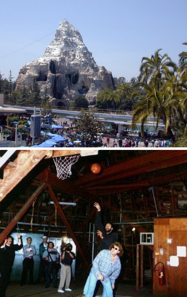 ▼迪士尼樂園的馬特洪峰 (Matterhor):加州迪士尼樂園中有一座「馬特洪峰」,這是遊樂設施「雲霄飛車」的一部分。很少有人知道,馬特洪峰頂部有一個小空間,那是一個籃球場,登山者和員工可以在裡面休息。