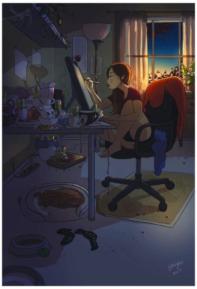 整個家都是我的地盤! 17張證明「單身才是勝利組」的超爽生活插畫