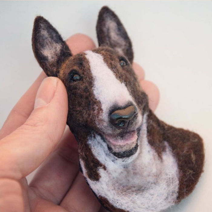 ▼原來她擅長用羊毛氈製作各種毛小孩的肖像,乍眼看去就跟真的動物沒兩樣!