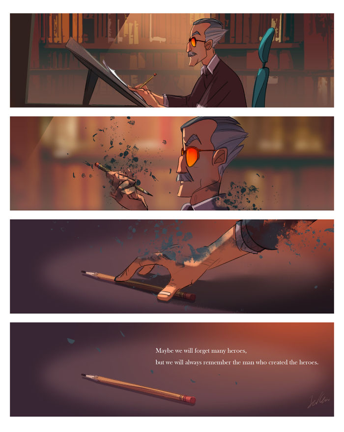 2018年11月14日漫畫界的一代傳奇史丹李永遠地離開了我們,但是他留給全世界的作品還會一直影響著每一個人。許多藝術家知道消息後,紛紛在最短的時間內畫出了致敬的作品,他老人家在天上看到有那麼多人愛著他,相信也會微笑著謝謝大家。