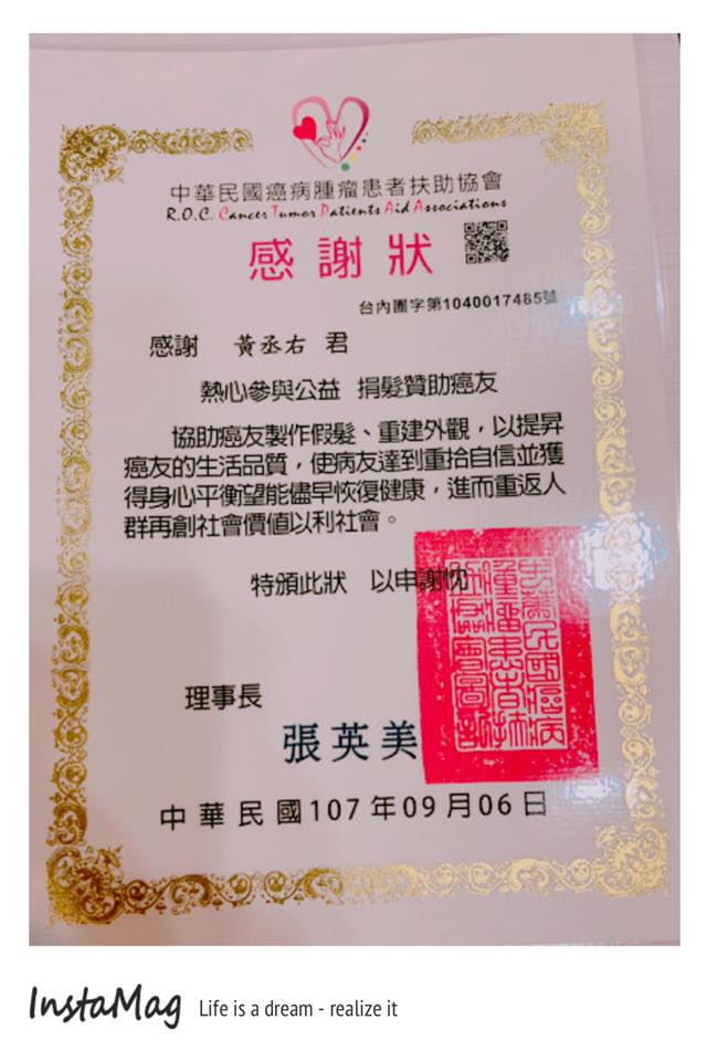 2018年11月14日為了有需要的人,一名黃姓小男孩從6歲開始就蓄長髮。媽媽在兒子獲得感謝狀後,特別在《爆廢公社》上傳照片,也分享了小男孩在蓄長髮期間面對到的狀況。雖然不容易,但是他都忍到了最後,這也讓張媽媽非常安慰,喊話「為你感到驕傲!」!