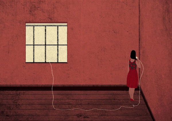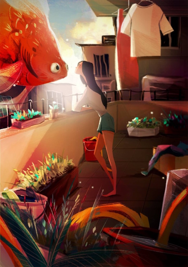 ▼在她的觀察下,她覺得台北有許多人都生活在牢籠裡,日復一日地搭乘交通工具去上班。除了這種苦悶的情緒外,她也會為這裡添入一道曙光,例如在天空遨遊的金魚,有著無拘無束的想像力。