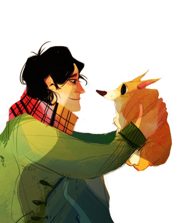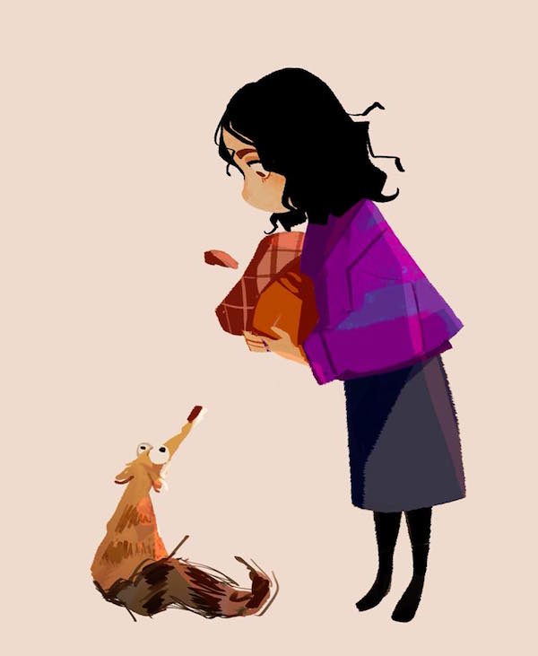 ▼水晶孔擅長使用溫馨的黃色調,也很喜歡描繪人與小動物之間的情誼。她筆下的互動都充滿著治癒。