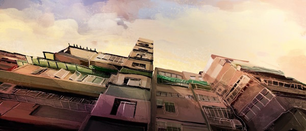 ▼水晶孔很喜歡描繪台北的街景,雖然很多人認為這裡的建築破舊,但她覺得裡頭蘊含了豐富的故事。