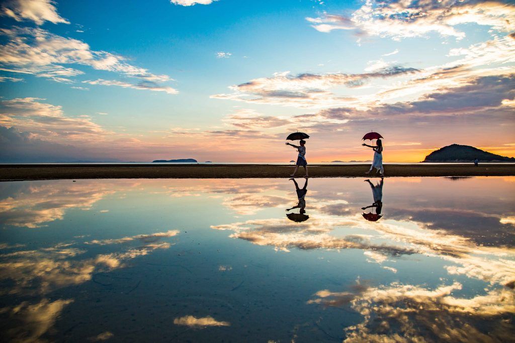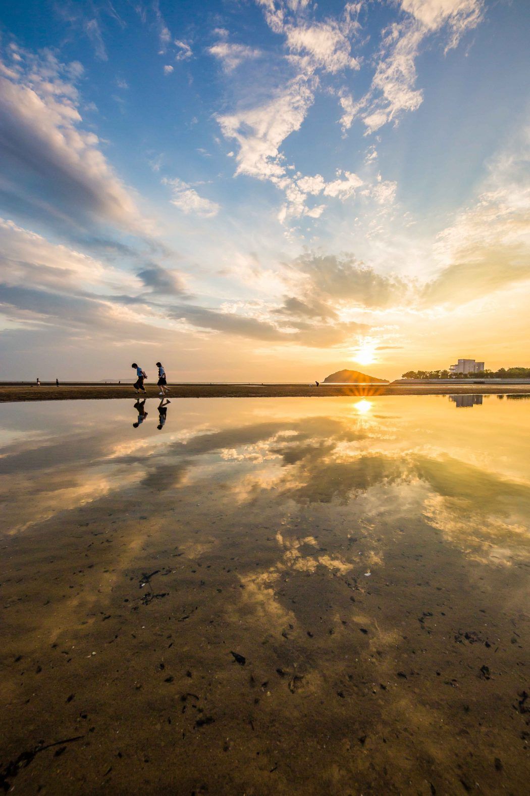 ▼由於父母濱正面向西面,因此在日落時分除了可以欣賞到超美的夕陽之外,還可以拍出猶如「天空之鏡」的效果。