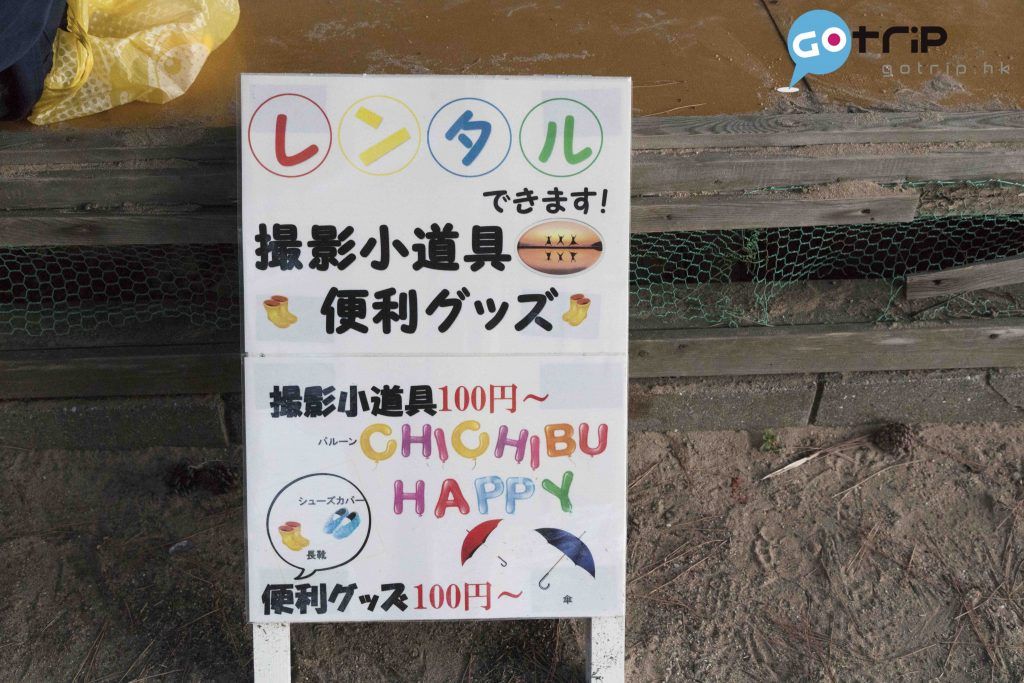 ▼如今岸邊也出現了許多小攤子,專門出租各種攝影小道具,讓你拍照起來更有fu,每件小物只要100日圓(約新台幣28元)。
