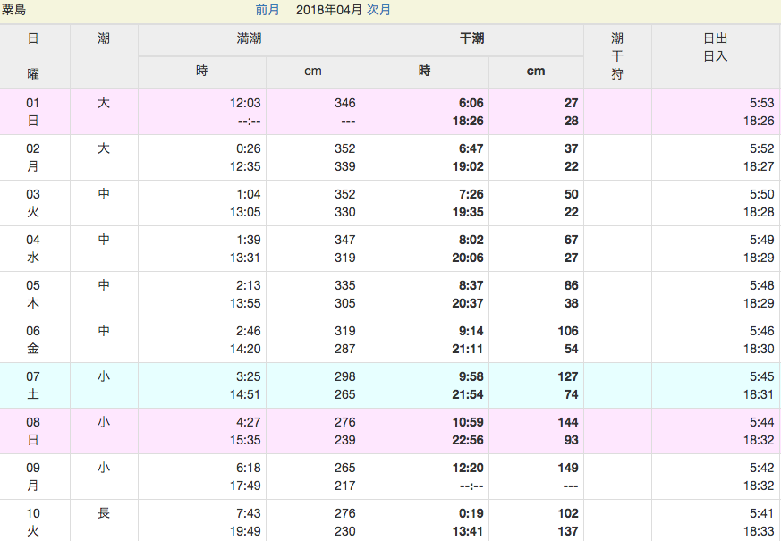 ▼父母濱的官網甚至還列出了每個月份的退潮和日落時間資訊,實在非常有心!