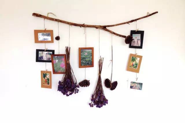 ▼枯樹枝和乾花打造的照片牆極具文藝氣息。