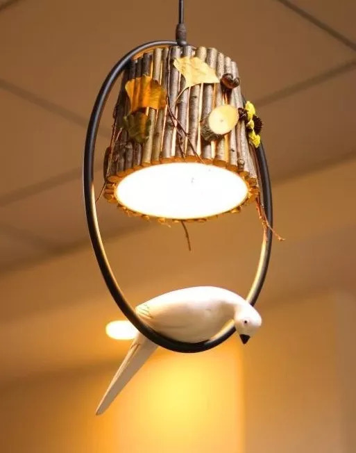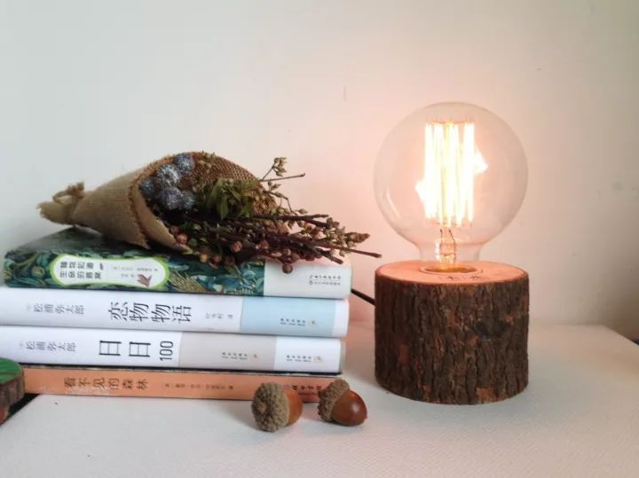 ▼枯樹幹做成的燈檯、茶台、筆架,乾花鑲嵌的壁畫和風鈴,還有樹葉項鏈,松果耳釘,就這樣她的桌子慢慢唱出了一片「森林」。
