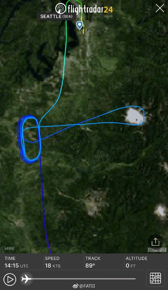 ▼這名浪漫的機長跟塔台管制員申請,「我能帶著旅客到東邊的雷尼爾山觀光一下嗎?」,由於機上油料充足,塔台管制員就答應了他的要求,就這樣機長就載著乘客們去到了臨近的知名雪山雷尼爾山觀光。