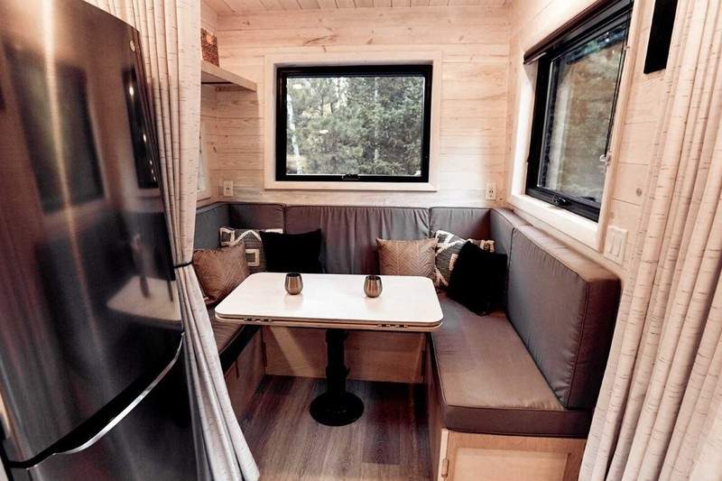 ▼「Draper」麻雀雖小,五臟俱全,具有獨立式玄關、露天陽台、專屬客廳、整套系統廚房、獨立衛浴系統附淋浴間。如果不是下面的輪胎,你可能以為這是一間獨立的小屋。