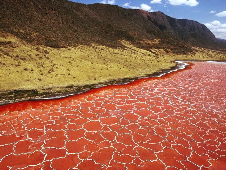▼3. 坦尚尼亞的「納特龍湖」(Lake Natron),看起來就像長頸鹿的皮膚!