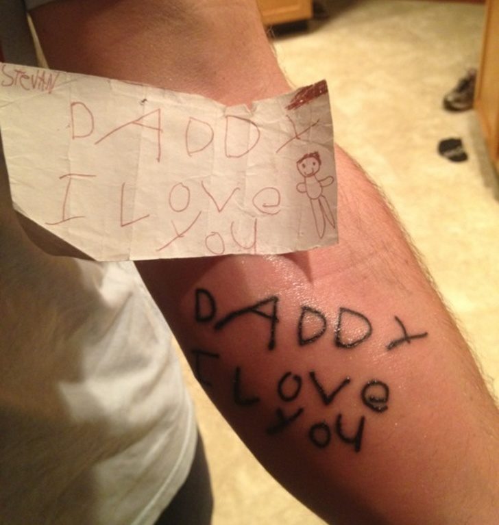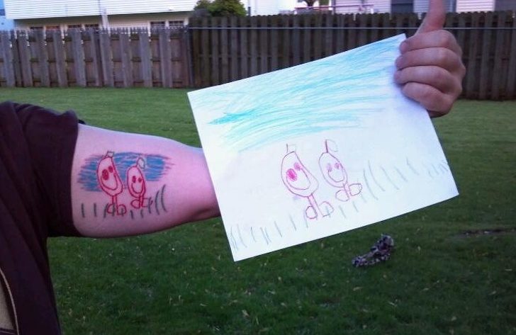 ▼「4歲女兒畫了這幅畫送給我,我把它刺在了身上。」
