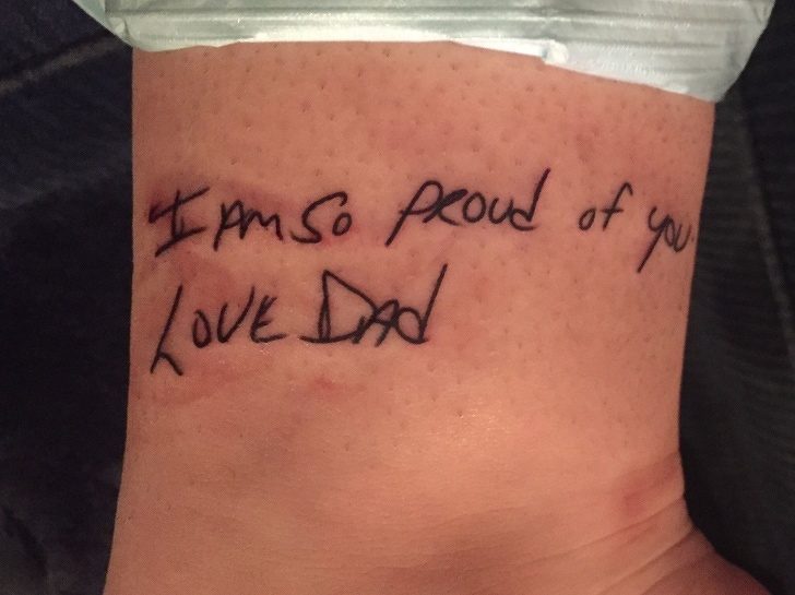 ▼「我爸在我4歲的時候離開了世界,我把他在軍用文件上的簽名刺到了身上。」