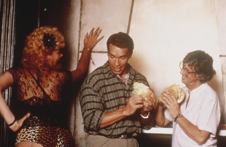 ▼《魔鬼總動員》: 阿諾史瓦辛格 (Arnold Schwarzenegger)正在與同劇組演員聊天。