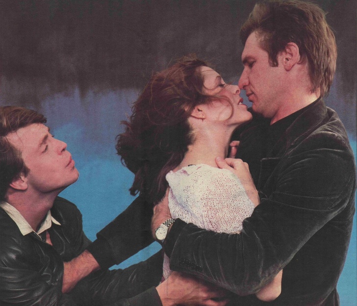 ▼《星際大戰》:馬克漢米爾 (Mark Hamill)、嘉莉費雪 (Carrie Fisher) 和哈里遜福特 (Harrison Ford) 在片場的互動。
