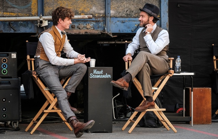 ▼《怪獸與葛林黛華德的罪行》:艾迪瑞德曼 (Eddie Redmayne) 和裘德洛 (Jude Law) 在現場聊天。