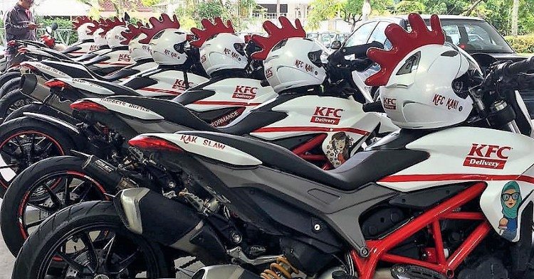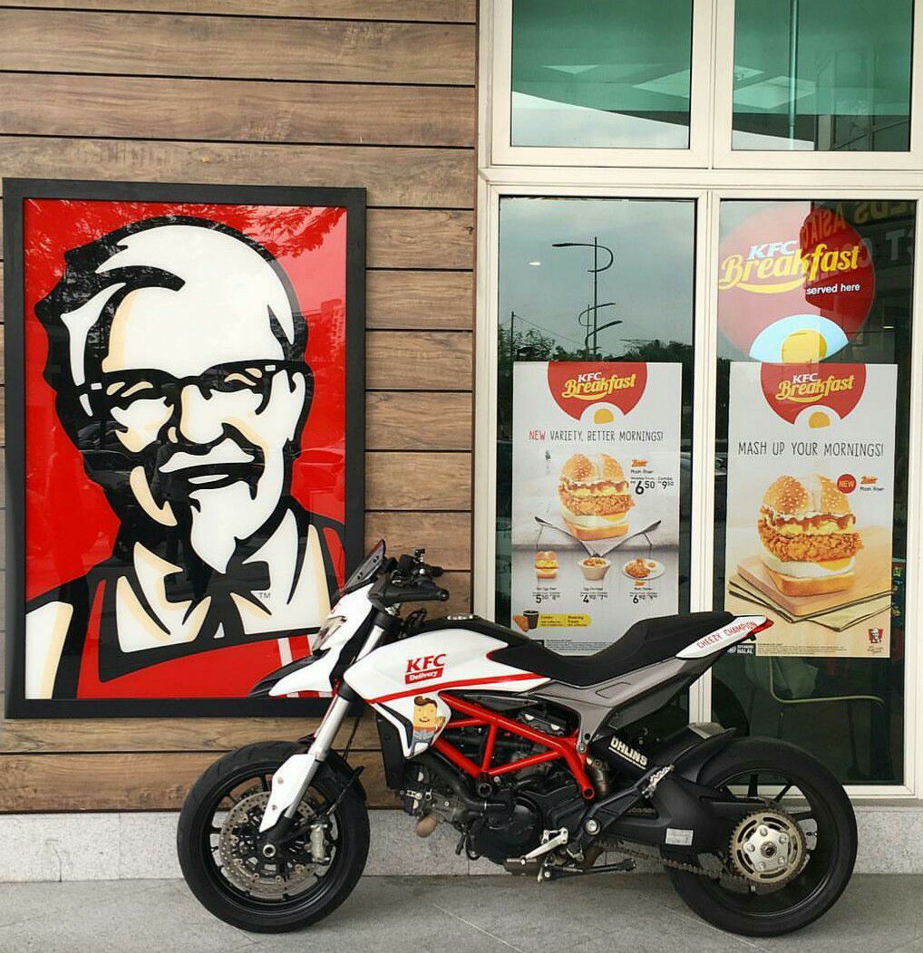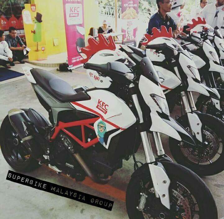 2018年12月10日每次路過肯德基,都能看到外面整齊排列的外賣車輛。世界上大部分地方的肯德基外賣車輛都是小摩托、電動車或小汽車,但馬來西亞的肯德基卻獨樹一幟,他們的送餐交通工具竟然是義大利知名重機品牌杜卡迪(Ducati)的Hypermotard 939。
