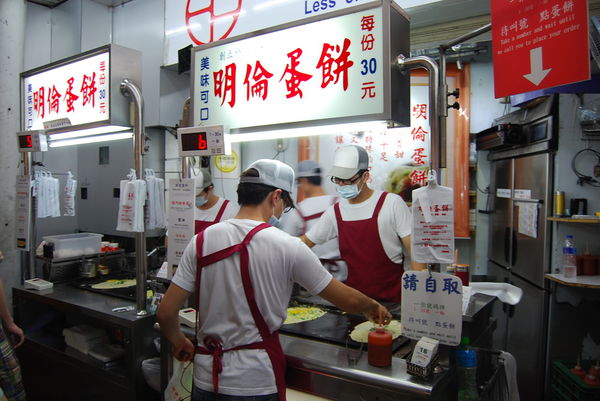 創立於1978年,位在福星路上的「明倫蛋餅」,是逢甲夜市超人氣的台灣傳統小吃。現點現做,所以任何時候都有人在排隊。下麵糊、煎至微焦、加蛋加葱花,還可以選擇添加獨門的甜辣醬、醬油、胡椒或是辣椒粉。加在熱呼呼、軟綿綿,香味四溢的美味蛋餅中,簡直好吃到讓人欲罷不能啊!