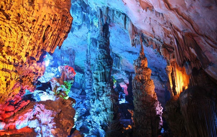 ▼中國桂林,有著大自然藝術宮殿美譽的「蘆笛岩洞穴」(Reed Flute Caves)。