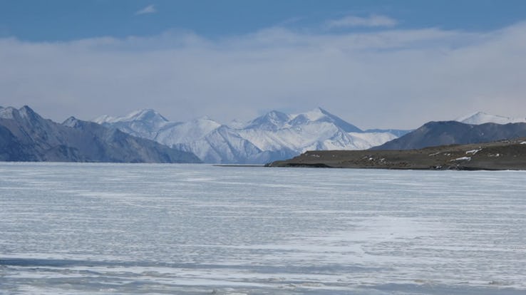 ▼青藏高原,位於中國大陸與印度之間,因地理位置而充滿爭議性的「班公錯湖泊」(Pangong Tso Lake)。
